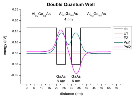 Double Quantum Well:  AlGaAs / 6 nm GaAs / 4 nm AlGaAs / 6 nm GaAs / AlGaAs