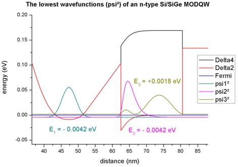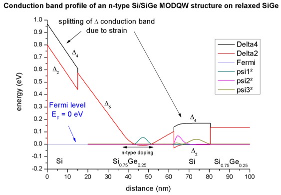 band profile and the lowest wave functions of an n-type Si/Si0.75Ge0.25